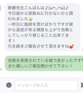 そのおかげか、彼だけでなく、仕事も上手くいくようになって先生には感謝しかありません。